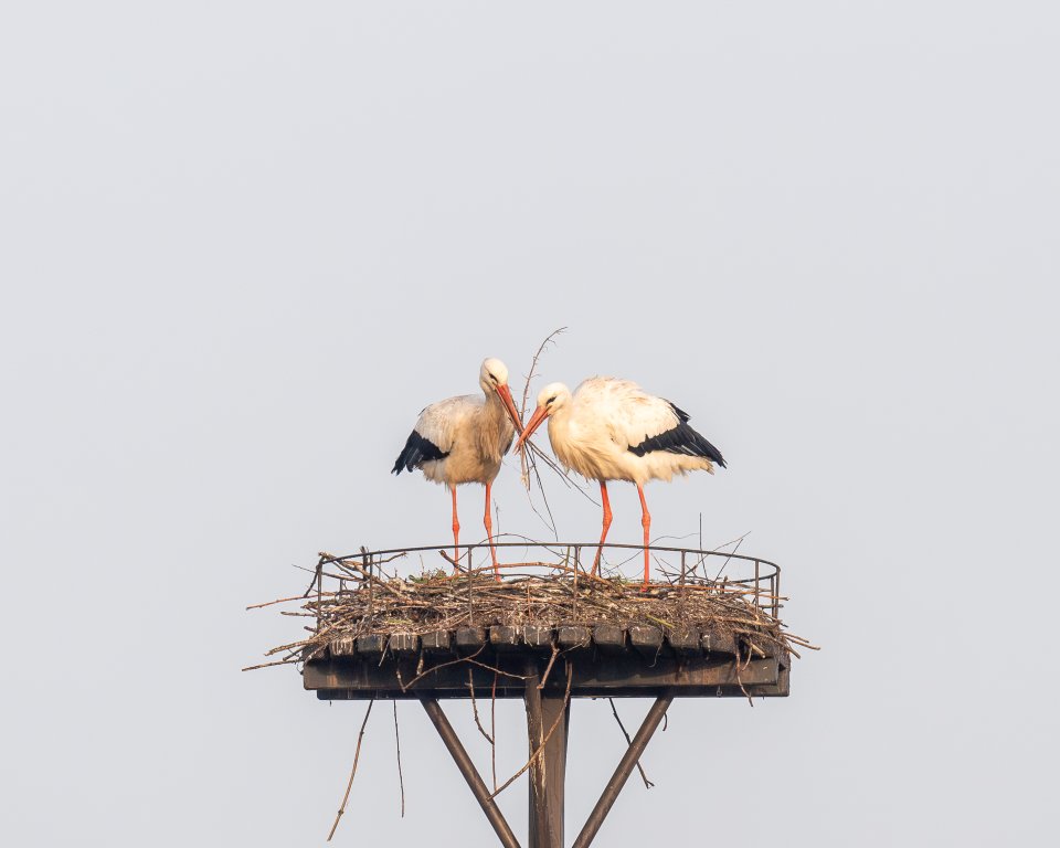 De winnaar van deze maand is een ooievaarsechtpaar dat samen een nest bouwt. Deze foto is gemaakt door Jos van de Leijgraaf uit Huissen. Gefeliciteerd Jos!